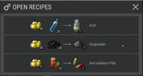 - 5 Sulfur + 10 Spices = 1 Anti-radiation Pills