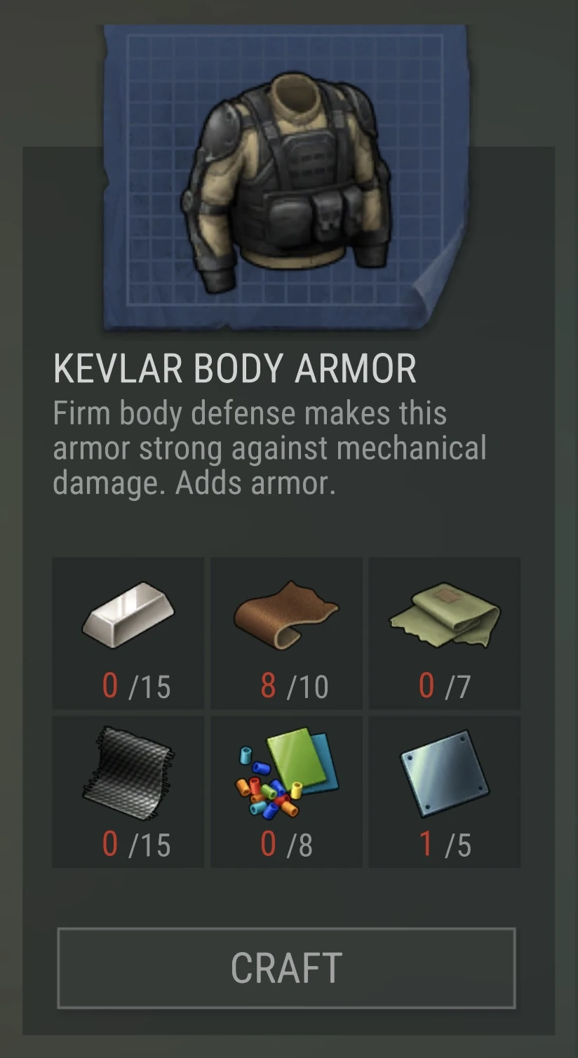 - “Firm body defense makes this armor strong against mechanical damage. Adds armor.”